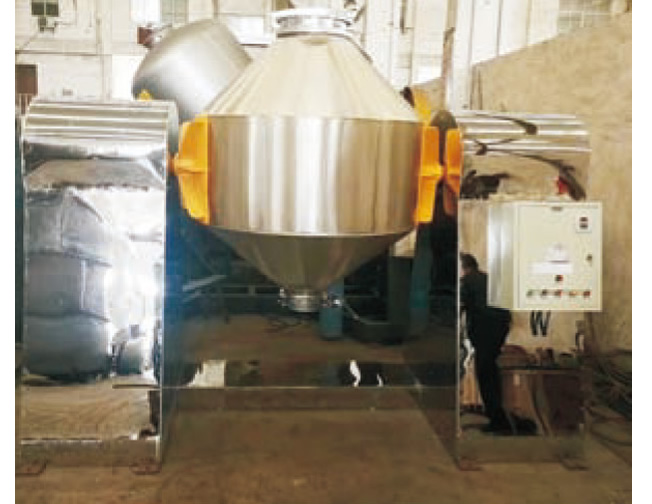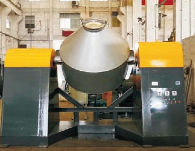 该机同V型混料机的功能相似。将粉未或料状物料加入到双锥容器中,随着容器的不断旋转,物料在容器中进行复杂的撞击运动,达到均匀的混合。该机对流动性较好的粉体及料粒状进行混合,效果显著。各项技术指标均达到国外同类产品标准。本机节约能源、操作方便、劳动强度低、工作效率较高。该机对较细粉烂容易凝块,对含有一定水份的多种植物均能混合。对微量物和添加物也可达到同样的混合效果。
